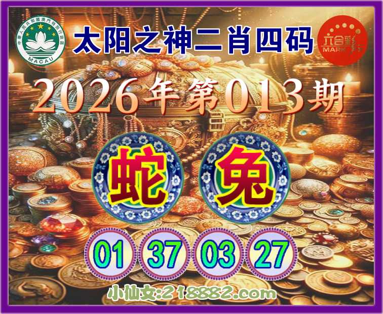 013期:《太阳之神》 😜二肖四码😜【兔】【01.37.03.27】开:蛇01